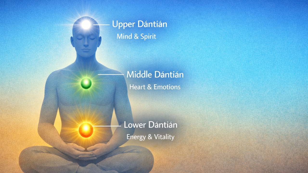The three Dāntiáns are energetic spheres with distinct roles, serving as primary focal points of cultivation within the body.